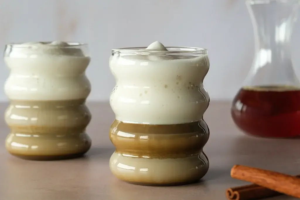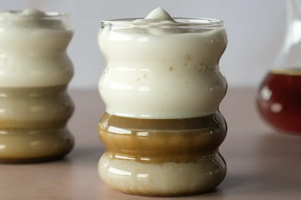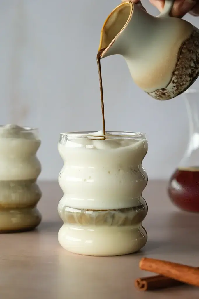 - Gieße nun zuerst den Milchschaum ins Glas.